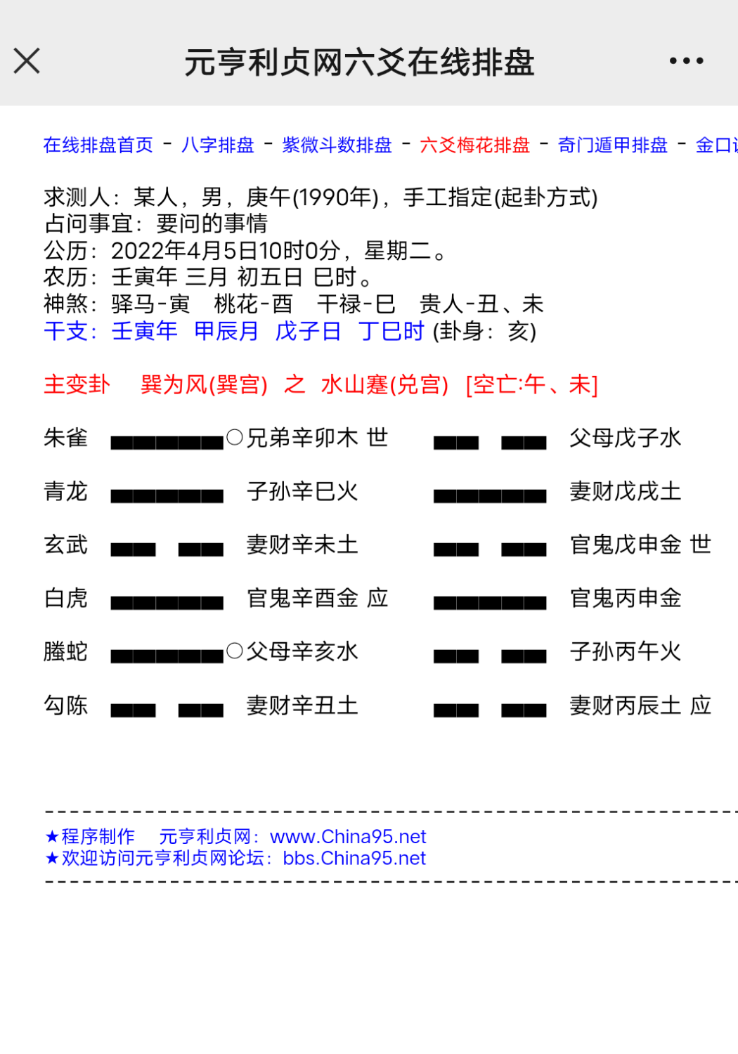 辛丑年。 己亥月。 乙丑日(空戌亥) 地 水师。 , 地风升 \父西。应。 玄 \ 父西 \ 兄亥,。 虎 \ 兄亥 \ 官丑。 蛇 \ 官丑。 世 X才午 世。 勾。 父酉 官辰。 雀 兄亥 \子寅。 龙。 \ 官丑。 应